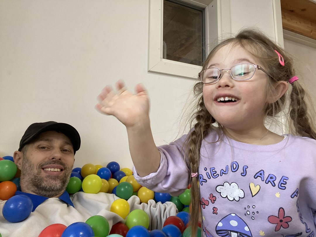 ”Jeg mener ikke, at hjemmetræning på fuld tid altid er gavnligt for et barn. Det får jeg skæld ud for at sige nogle gange, men jeg kan ikke give det sociale, som andre børn kan. Det er vigtigt, at de også kommer ud og ser nogle andre end far og mor. Det er også derfor, vi kører deltids hjemmetræning og deltid i integreret børnehave,” forklarer Niels Kaysen, der er på tabt arbejdsfortjeneste. Han regner med at fortsætte hjemmetræningen, til Amalia er mellem 10-14 år.