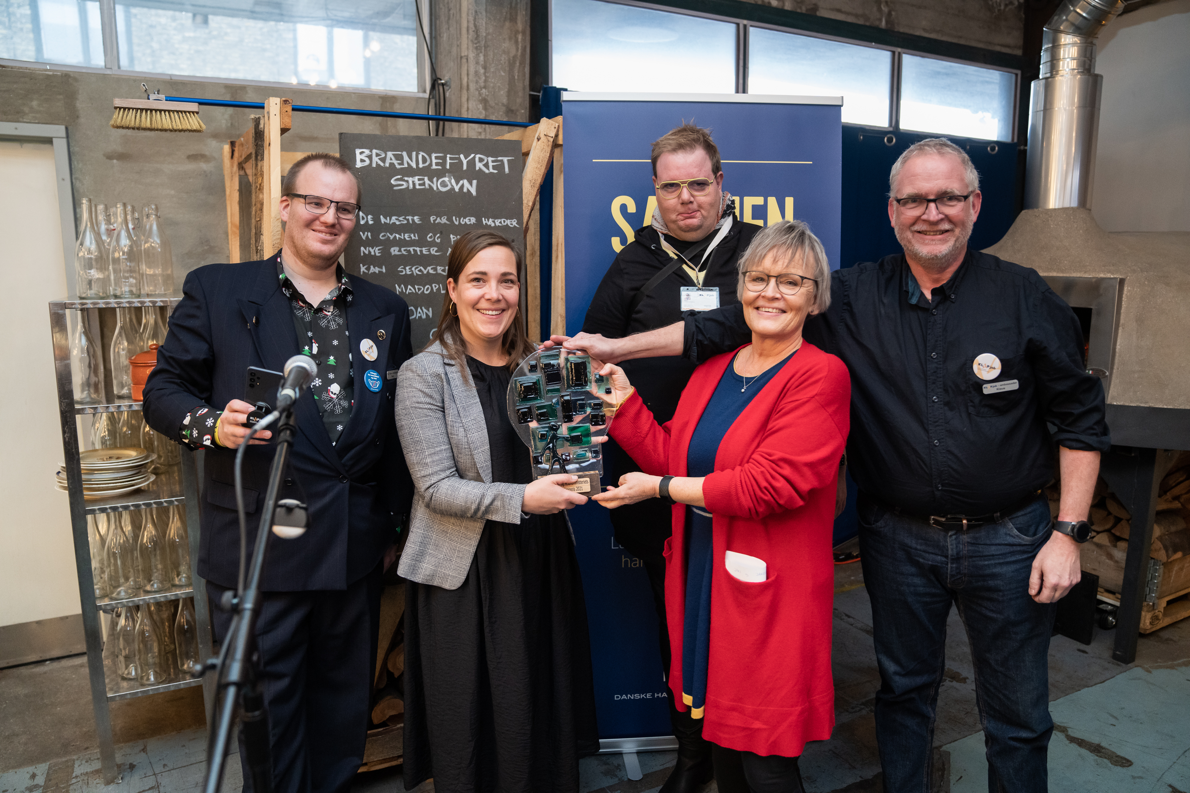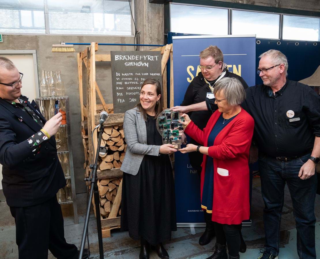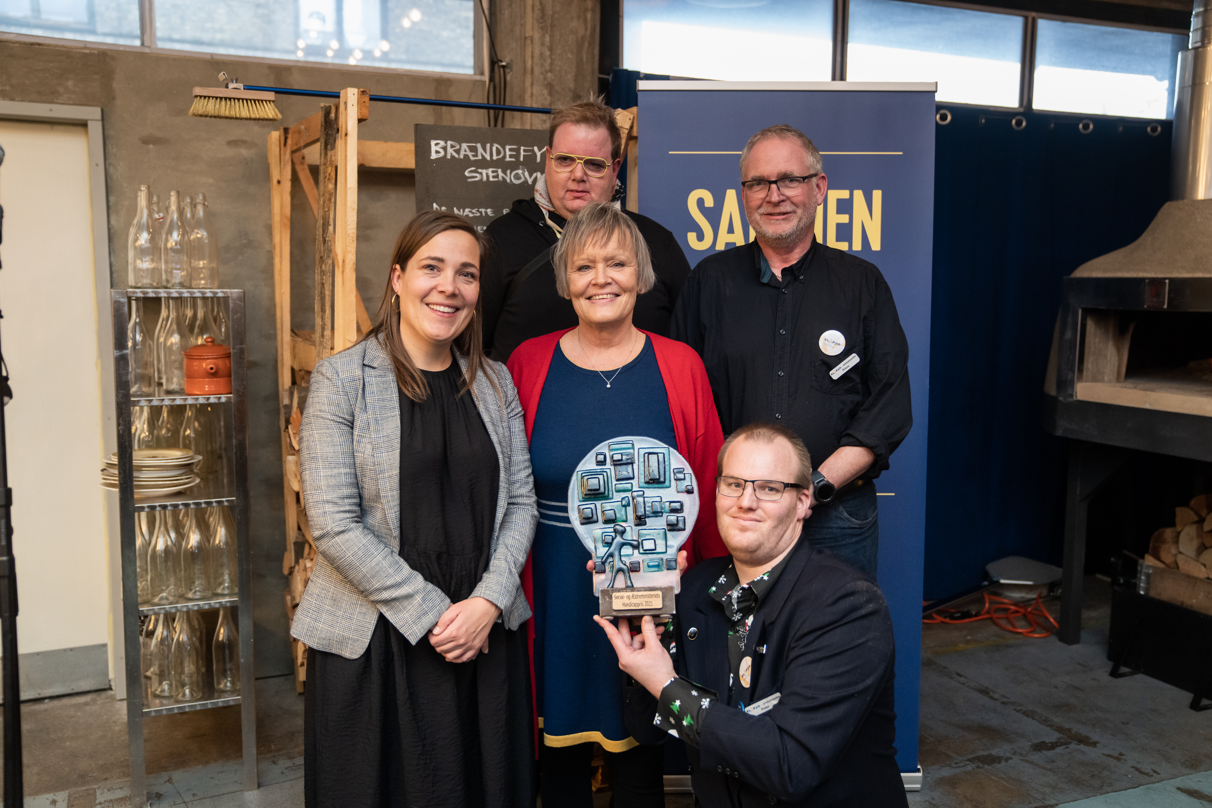 Ministeren overrakte prisen til Levs landsformand, Anni Sørensen og de tre KLAPjob-ambassadører Bjørn, Klaus og Peter. Levs landsformand var tydeligt meget stolt og rørt over den flotte pris: