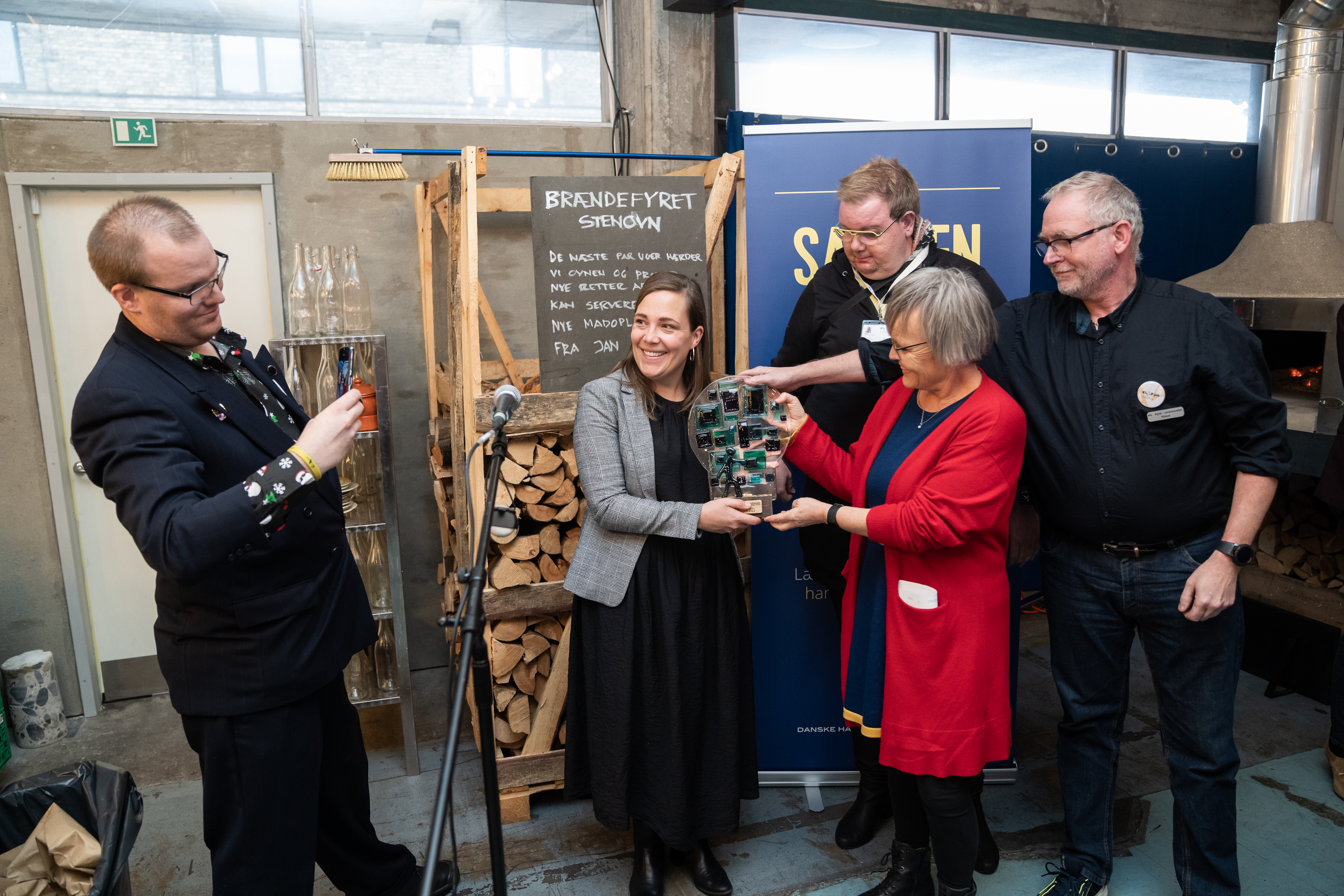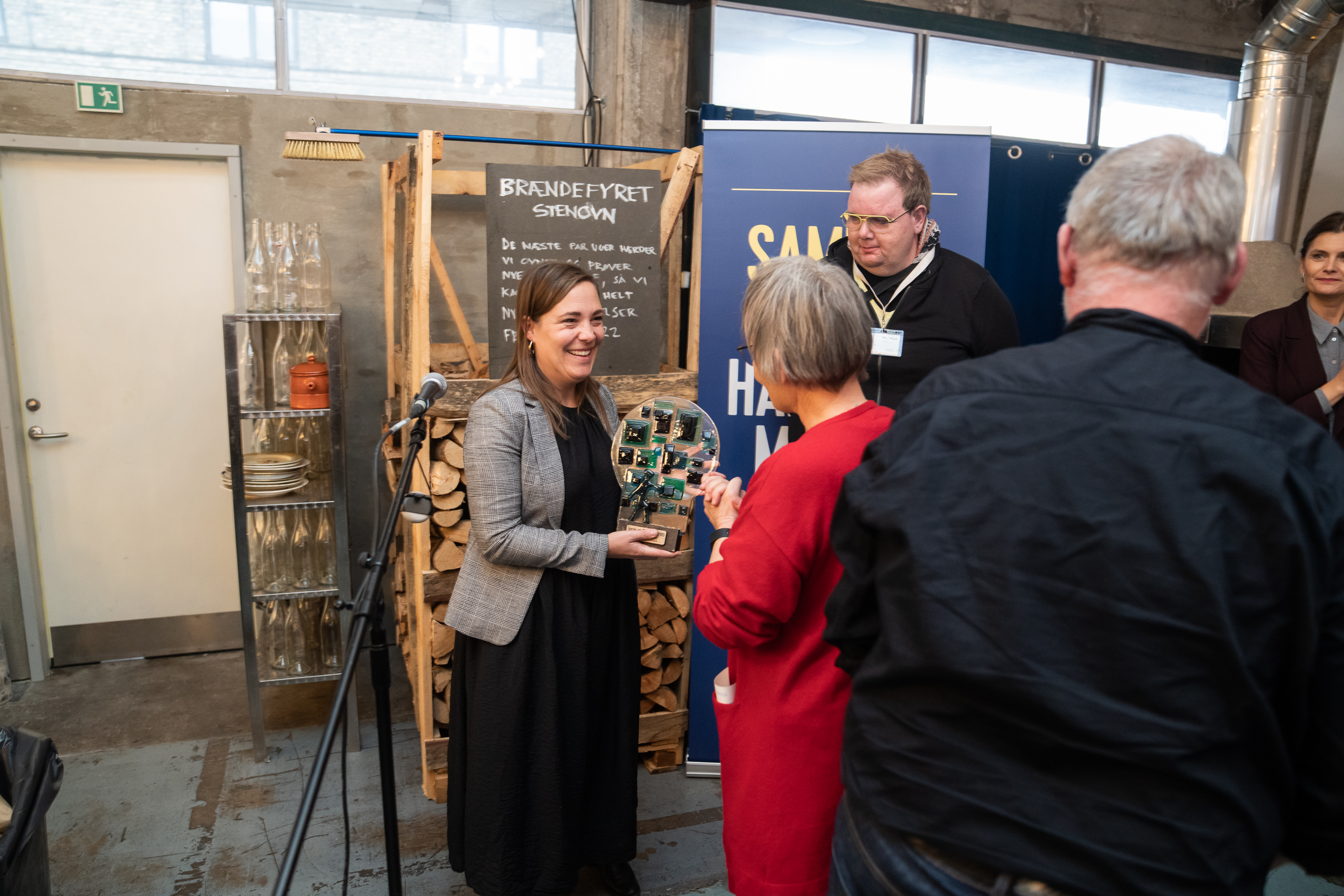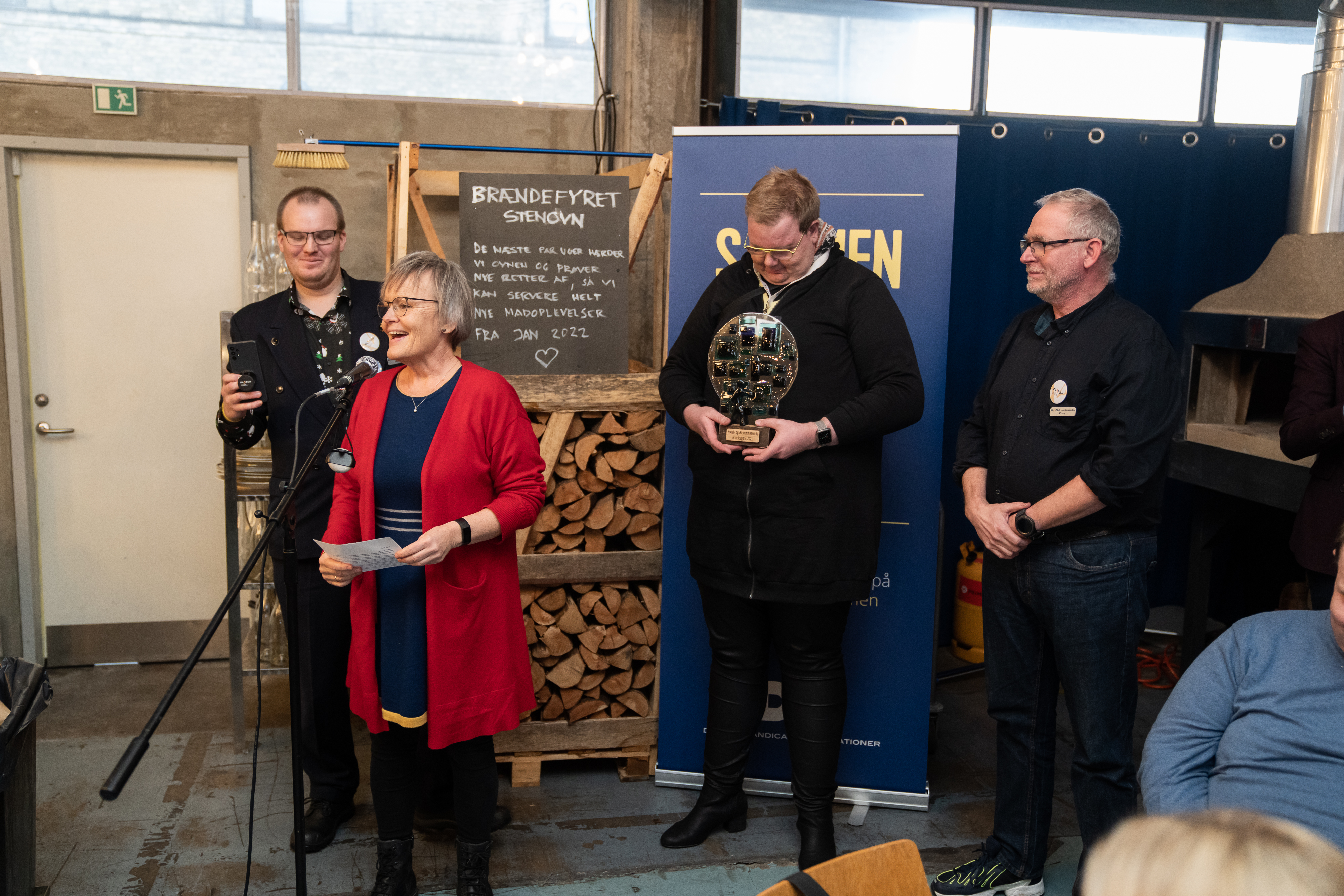 Ministeren overrakte prisen til Levs landsformand, Anni Sørensen og de tre KLAPjob-ambassadører Bjørn, Klaus og Peter. Levs landsformand var tydeligt meget stolt og rørt over den flotte pris: